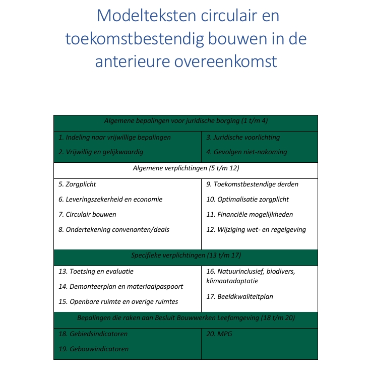 Modelteksten circulair en toekomstbestendig bouwen in de anterieure overeenkomst.